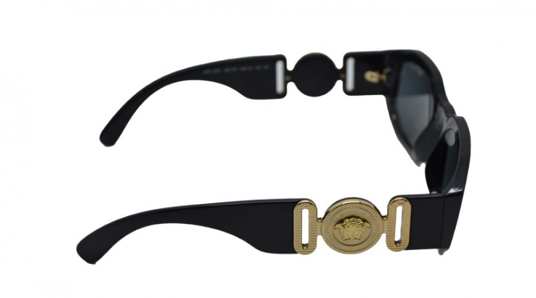 Gözlük, siyah çerçevesi ve gri camlarıyla klasik bir görünüme sahiptir. 35mm yükseklik ve 53mm genişlikteki camları, UV ışınlarına karşı %100 koruma sağlayan polikarbonat malzemeden yapılmıştır. 140mm genişliğe sahip gözlüğün çerçevesi ise dayanıklı ve hafif asetat malzemeden üretilmiştir. Versace logosu, 140 mm sapların ucunda altın rengi metal detaylarla vurgulanmıştır. 18mm burun köprüsü uzunluğu gözlüğün konforunu artıran bir detaydır. Bu güneş gözlüğü hem günlük hem de özel günlerde kullanabileceğiniz şık ve kaliteli bir seçimdir.